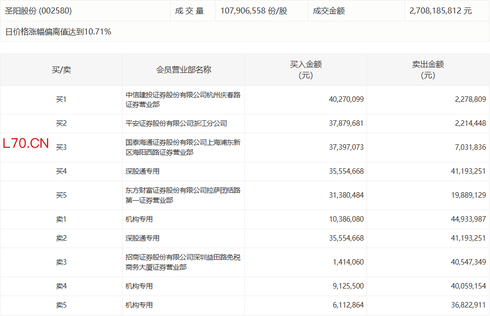 圣阳股份今日涨停,有3家机构专用席位净卖出9619.16万元