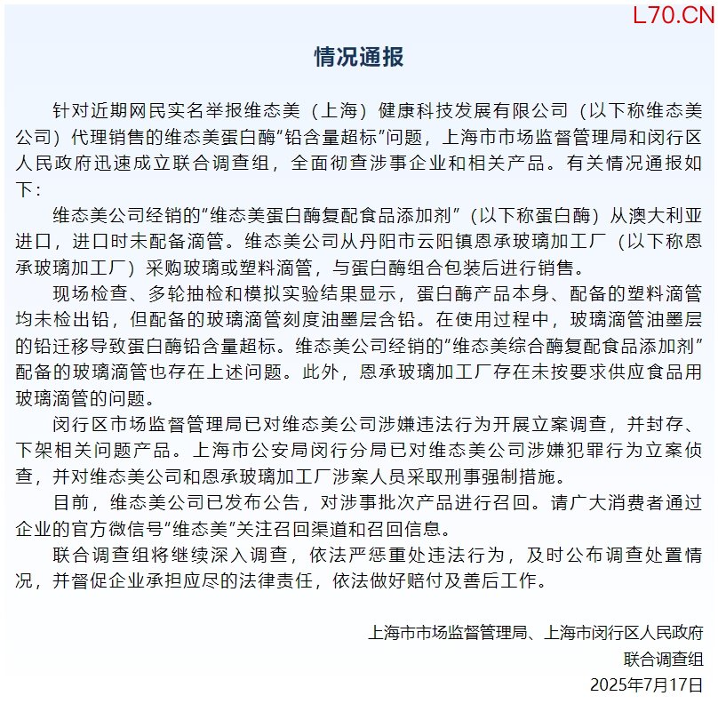 上海市场监督管理局通报维态美公司涉嫌违法行为相关调查情况
