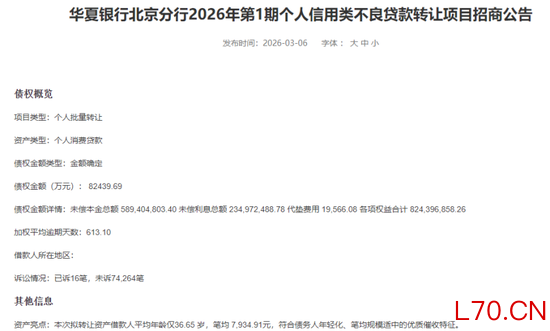 银登网上,已经披露了华夏银行北京分行2026年第1期个人信用类不良贷款转让项目招商公告。