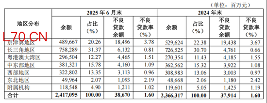 截至2025年上半年,该行京津冀地区不良贷款余额184.96亿元,比年初有所减少,但受该区域贷款规模下降影响,不良贷款率比年初略有上升,达到了3.78%。