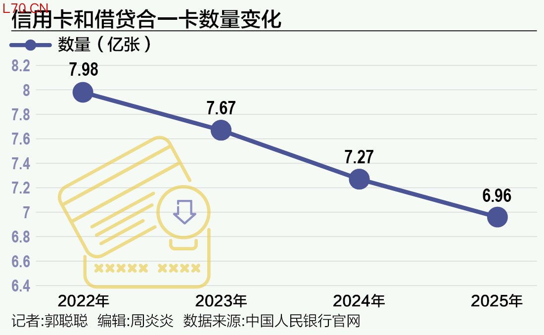 近期,央行发布《2025年支付体系运行总体情况》数据显示,全国信用卡发卡量降至6.96亿张,连续三年下滑,正式跌破7亿关口,创近七年新低水平。