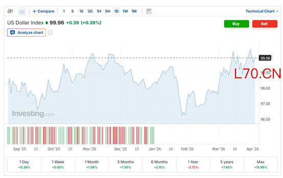 在动荡时期,美元一直是投资者的首选避险货币,在特朗普发表演讲后,美元兑大多数货币上涨。截止目前,美元指数上涨0.39%。