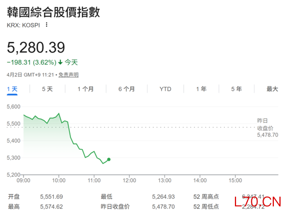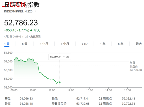 亚太股市由涨转跌,日韩股市领跌。日经225指数开盘上涨0.61%,截至发稿,跌幅为1.77%,报52786.23点。韩国综合指数高开1.3%,截至发稿,下跌3.62%,报5280.39点。